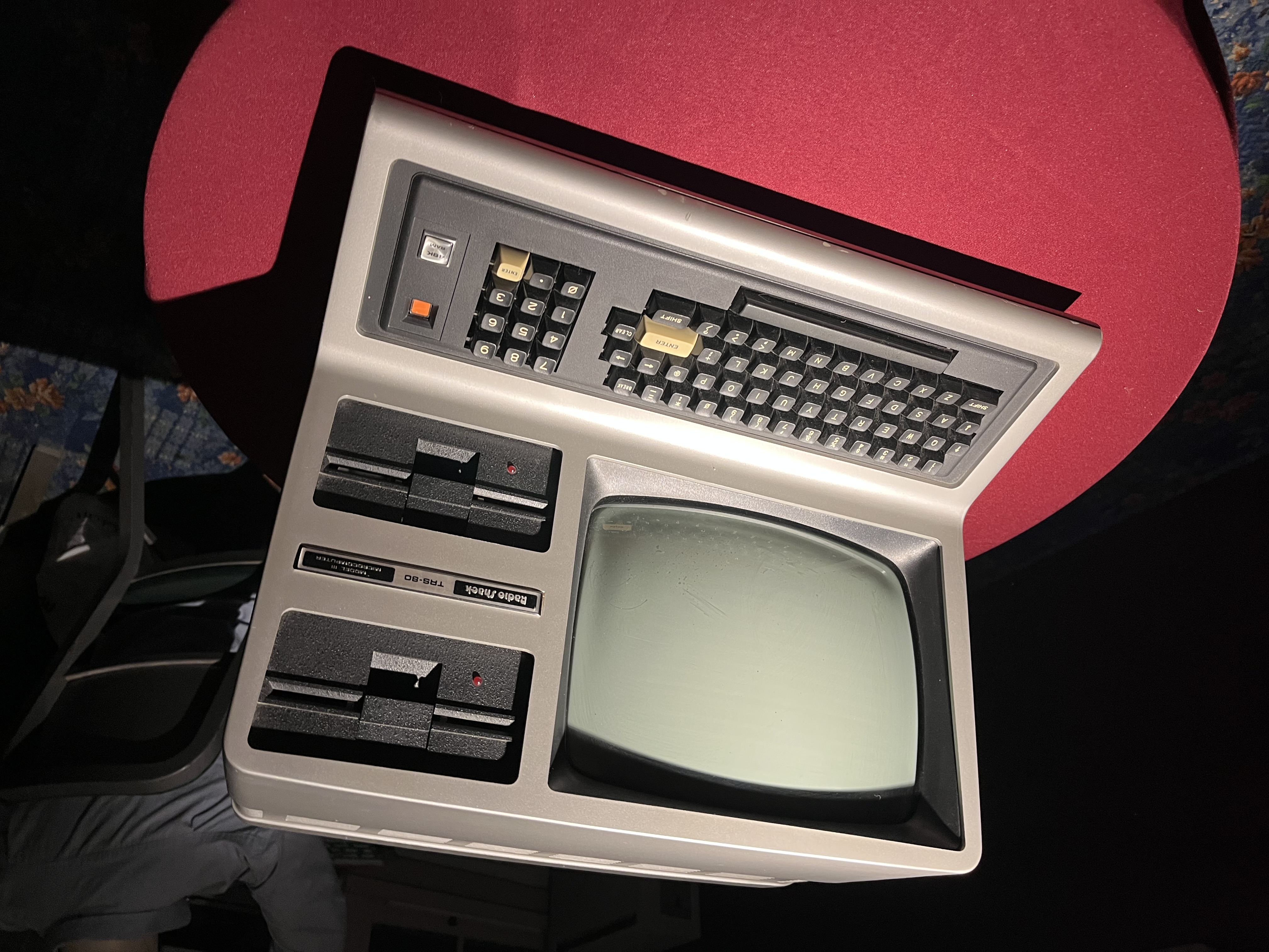 The next evolution in the TRS line was the Model 3. The only real difference to the Model 1 was that the floppy drives came standard, and it was all packaged up in a single, integrated unit. When I came out I thought this was a great advancement. It wasn't until years later I realized the benefit of the monitor and keyboard being separate. Not only did it allow for more hardware options, but it allowed the user to position them to his liking. It would also allow things like putting the CPU on the floor and having just the monitor and keyboard on the desktop.
